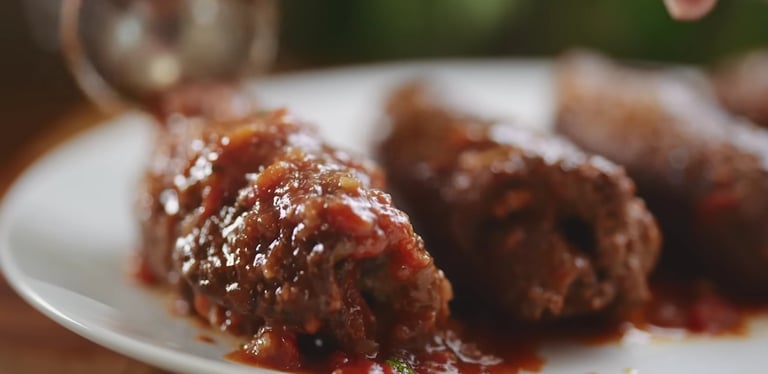 Braciole (pronounced brah-choh-leh) is an Italian-American classic, but its roots trace back to Southern Italy, where variations of this dish have been enjoyed for generations. While beef is the most common choice, some regions prepare braciole with pork, veal, or even chicken. The meat is pounded thin, filled with a flavorful stuffing, then rolled, secured with toothpicks or kitchen twine, and braised in a rich tomato sauce until melt-in-your-mouth tender.