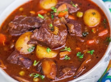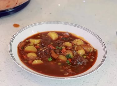 There's nothing quite like a warm, comforting bowl of homemade beef stew on a chilly evening. Packed with tender beef, hearty potatoes, mushrooms, and carrots, this stew is a must-try for any home cook. The rich, savory broth, enhanced with red wine and aromatic spices, makes every spoonful irresistible.
